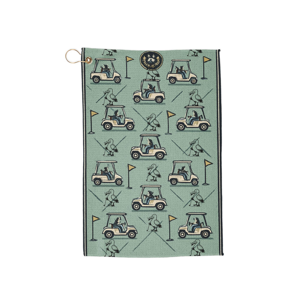 Golf Towel — Vintage Golf Cart Pattern Microfiber Towel with Clip