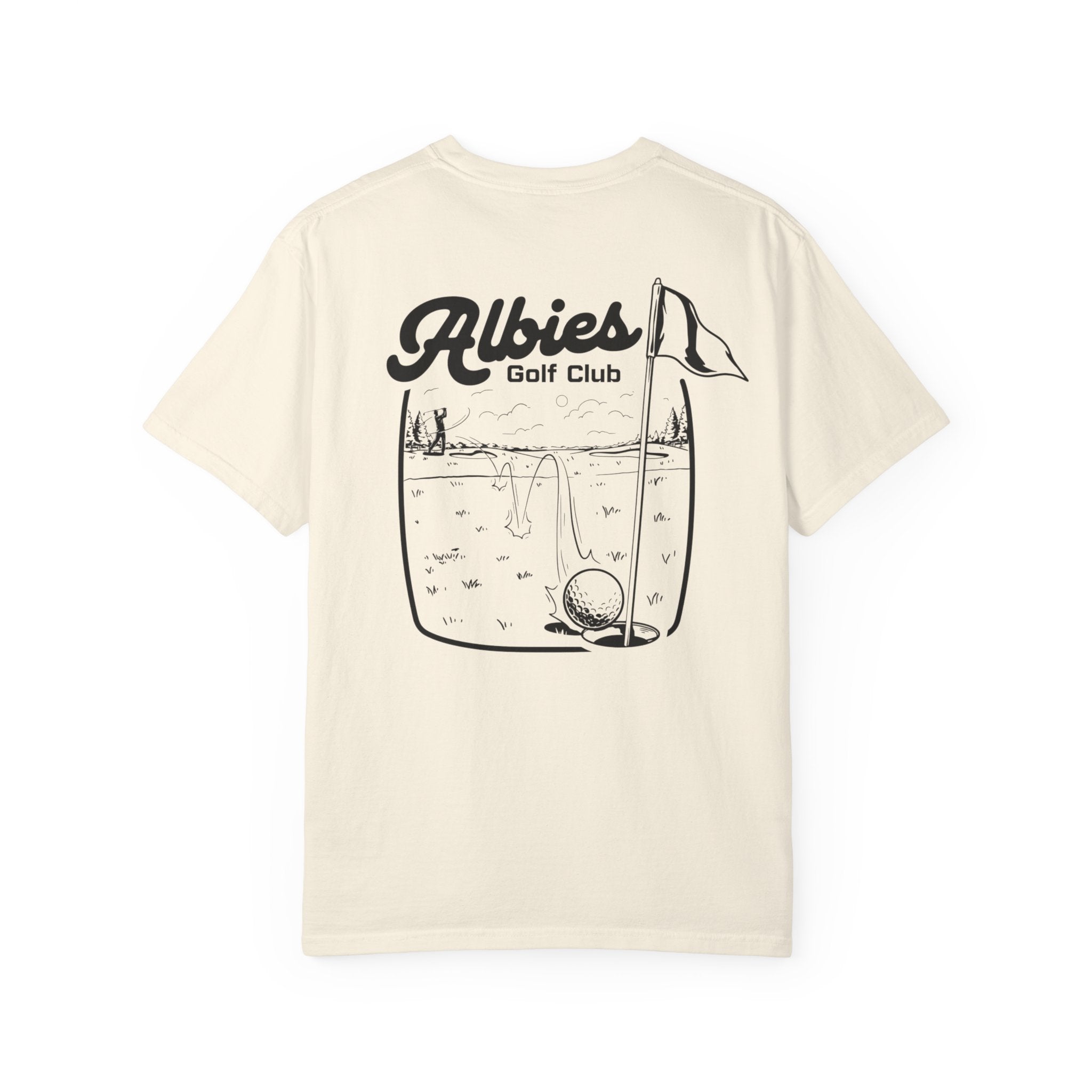 Take the course vibes everywhere you go. The Albies “Bucket Shot” Tee blends comfort, style, and that unmistakable Albies culture. Designed with a bold back graphic of our signature fairway art and a clean chest hit up front, this shirt is built for golfers who rep the community on and off the course.