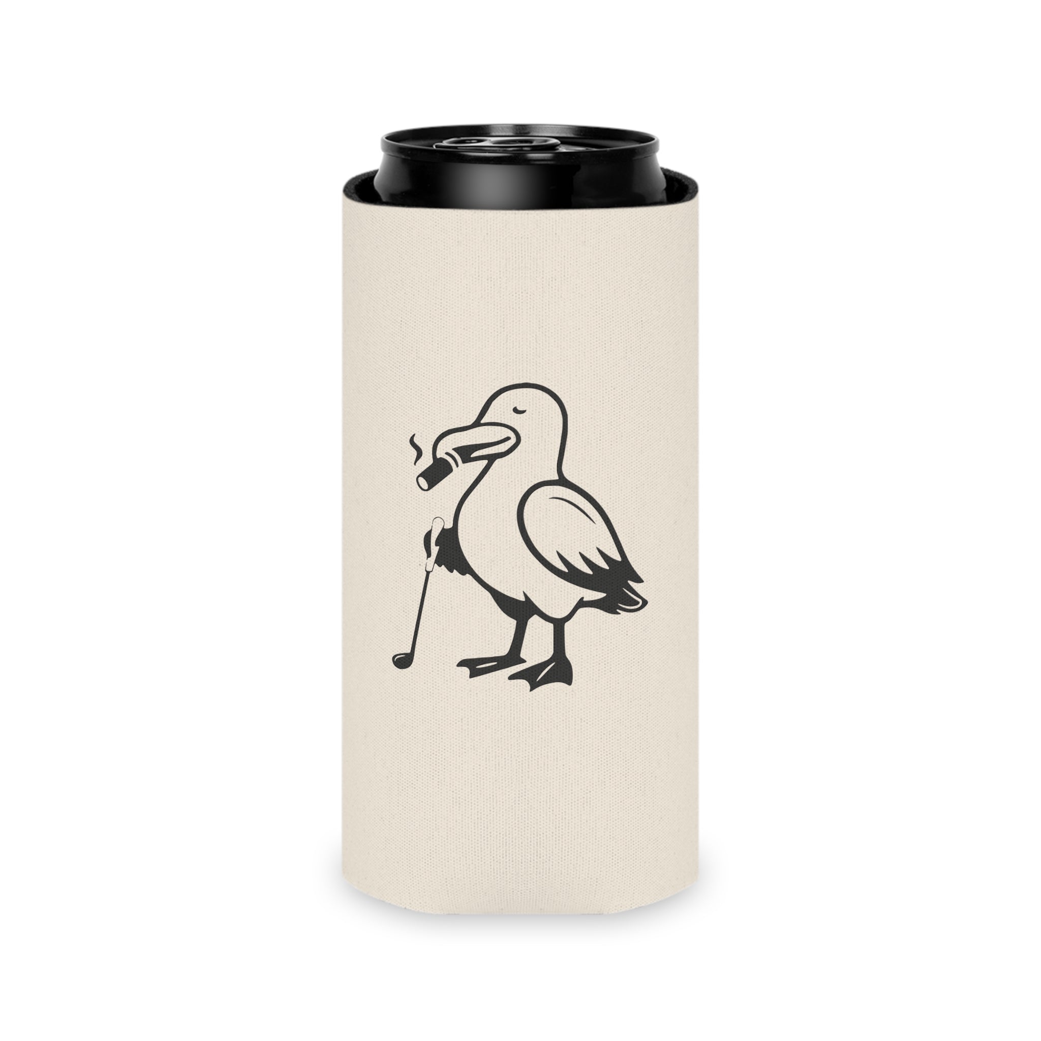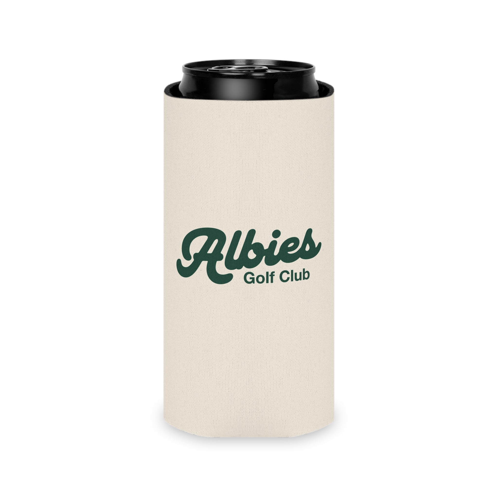 Meet your new go-to for league night, tailgates, and twilight rounds. This lightweight can cooler pairs a durable, full-coverage print with a soft foam liner to keep your drink secure and comfortable in hand. Finished in Albies’ washed-cream look with classic green script and our golf-ready gull—because good taste doesn’t stop at the 19th hole.